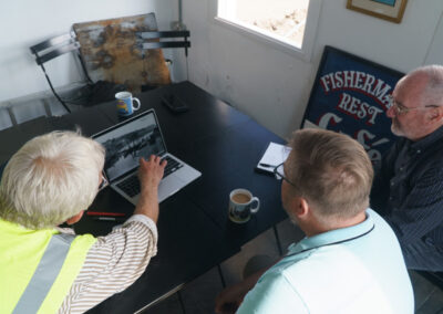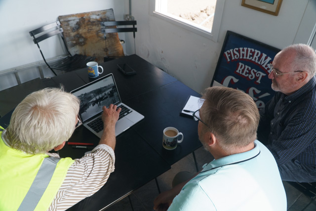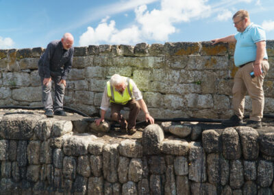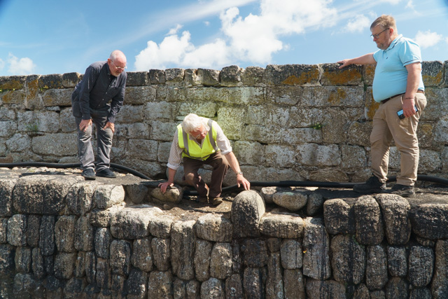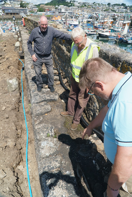 The original Statement Heritage report on the importance of the Old Harbour and the role the Old Quay has played was the catalyst for action in bringing this historically important part of the harbour back into use. Last week, Newlyn resident Chris Miners and Jeremy Chadburn both from English Heritage came to inspect the progress being made and offer further guidance on the ongoing work to repair and re-instate stonework and install new services for the benefit of potential users like the Cornwall Maritime Trust and the Mounts Bay Lugger Association who will be making much more use of the facility in the future along with fishermen servicing the smaller boats in the fleet. The addition of quayside water and electricity will make all this possible.