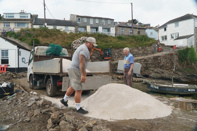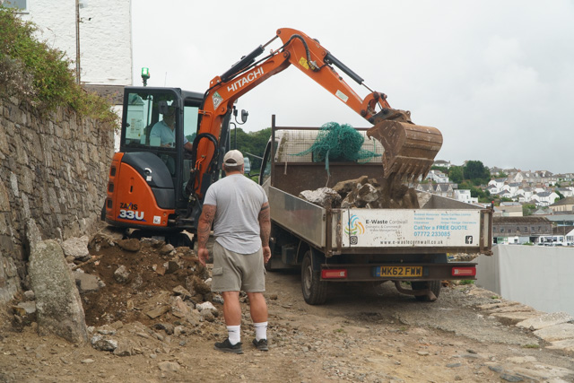 In the meantime, John Edwards and his swing shovel has been hard at work making good the groundwork for the new water and electric services ably assisted by Steve from Newlyn’s very own waste removal experts, E-Waste Cornwall. Always good to see local players involved in important projects to preserve the character and heritage of the area while at the same time bringing something new by way of a fully functioning quay facility!