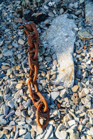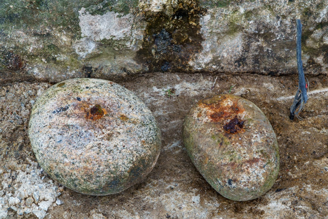 amongst the pebbles on the beach are five huge single granite stones, each weighing several tones and fitted with iron eye embedded in lead which were used as mooring stones, exactly where remains unknown but possibly they were used to hold the old coal hulk in place in the early part of the 20th century…
