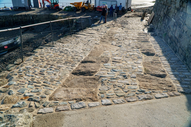 which clearly helps reveal the outside original edge of the access road which Historic England were very keen to see preserved as a visual reminder of how the harbour has responded to different needs of use over time…