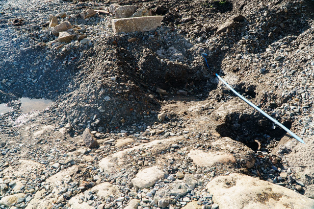 the swing shovel on site has revealed the extent of the south slip, much of it long since covered by a beach of pebbles and rubble…