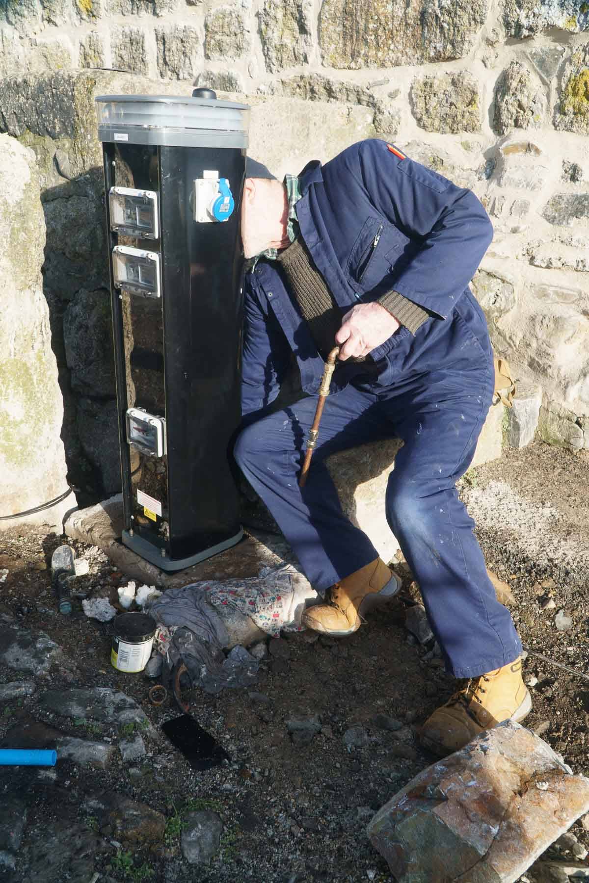 Connecting up the water and electricity bollards on the Old Quay.